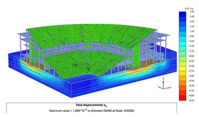 Built in the 1950s, the Moscow Luzhniki Stadium has recently undergone its third and largest reconstruction to become an elite category football stadium designed for use year-round. The project required reconstruction of the six-level, elliptically shaped structure while preserving the heritage façade and stadium roofing. Before beginning construction works, the team needed to address several geotechnical issues, including over-consolidated, Jurassic clay deposits, soil compaction, and existing utilities under the foundation slab.They selected PLAXIS to model and simulate the impact of reconstruction activities, determining the optimal construction sequence in terms of soil deformation, stress, and stability. Using the 3D model increased reliability of the geotechnical forecast of the base displacements for the new construction and reconstruction of existing buildings and structures, providing opportunities to improve operational efficiencies in the final design. Bentley’s digital solution enabled more accurate predictions, improved construction reliability, and reduced the cost of the foundation through detailed soil analysis.