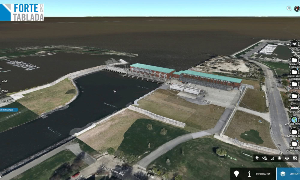A estação de bombeamento do Canal da 17th Street é um dos ativos de proteção contra enchentes mais importantes de Nova Orleans, que descarrega águas pluviais durante grandes eventos em uma região vulnerável à elevação do nível do mar e condições climáticas extremas. Para melhorar a confiabilidade e a capacidade de resposta da estação, a Forte and Tablada foi encarregada de criar uma plataforma centralizada para visualização de ativos digitais, análise de desempenho e planejamento de manutenção. O projeto apresentou integração de dados, coordenação e desafios técnicos em um cronograma apertado que as soluções estáticas anteriores não conseguiram resolver.